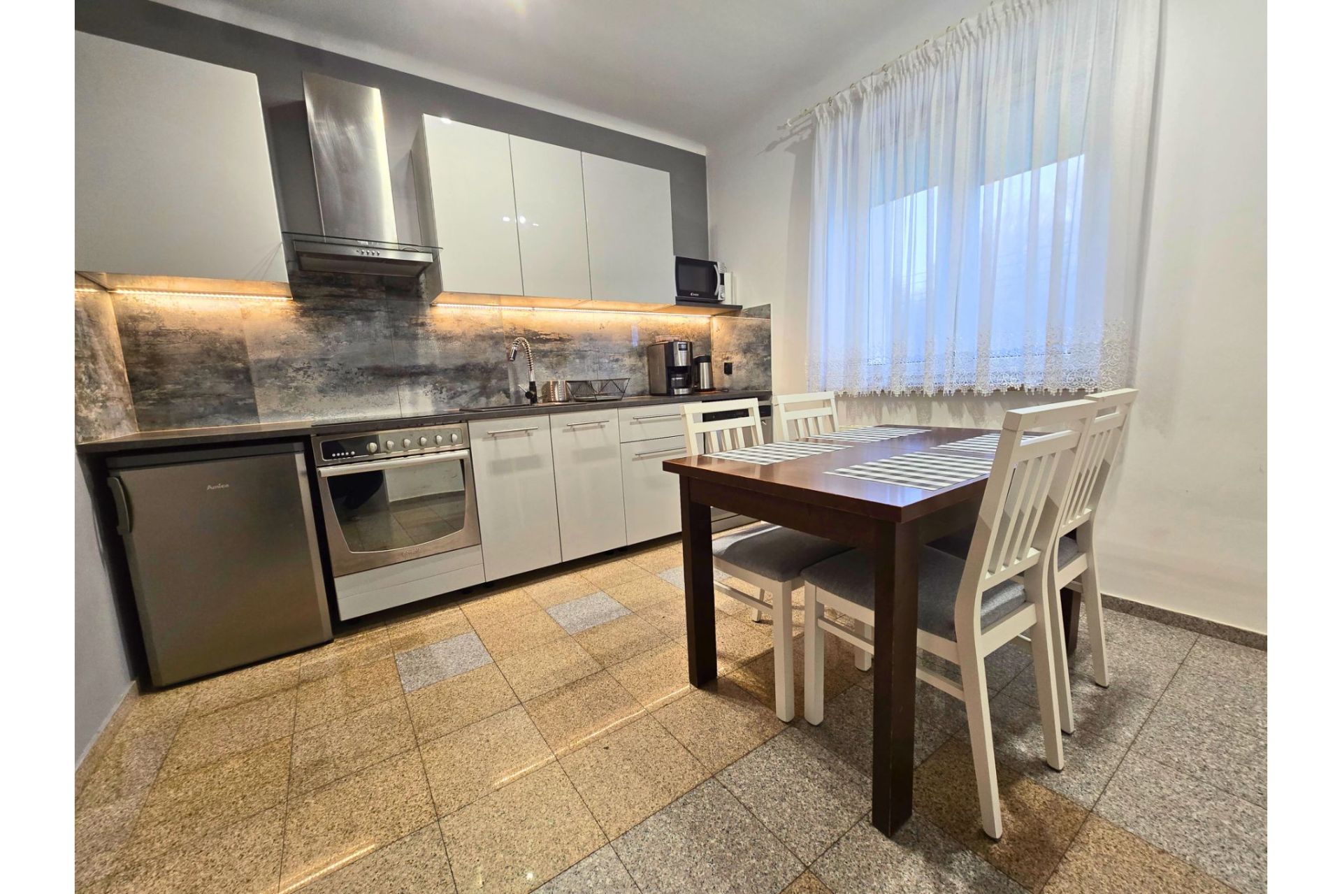 Przestrzeń i Wyposażenie: Jako nasze największe mieszkanie, Latarnik oferuje pełną swobodę. Do dyspozycji gości jest nowoczesna kuchnia (zmywarka, ekspres, pełne AGD), komfortowy salon oraz szybkie WiFi i Smart TV.